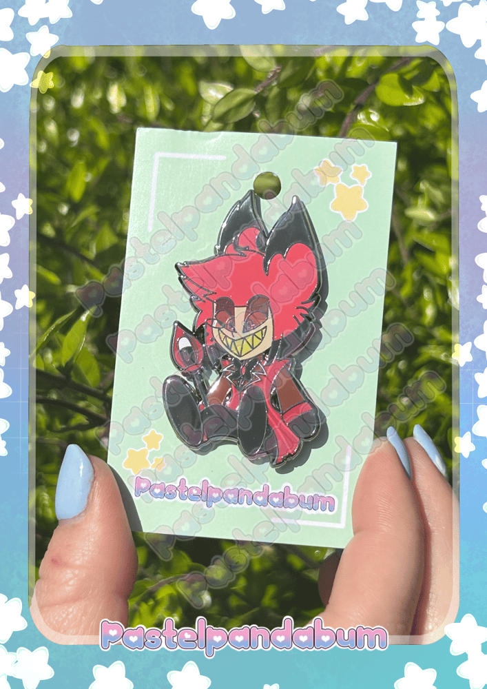 These pins feature the character Alastor from the show Hazbin Hotel. This is a FANMADE pin!