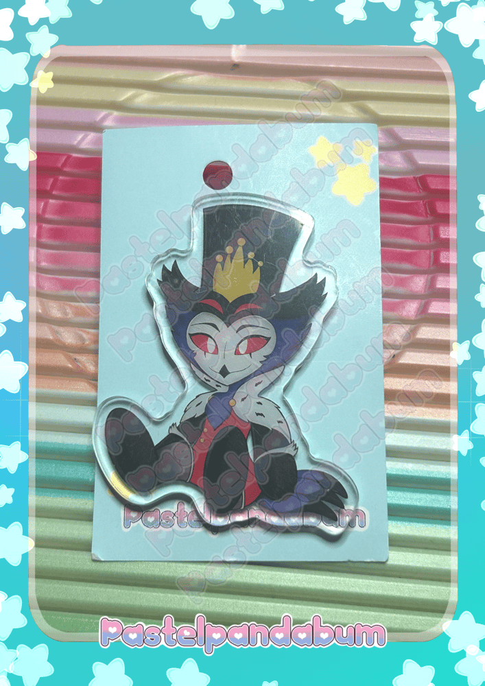 These pins feature the character Stolas from the show Helluva Boss. These are FANMADE pins!