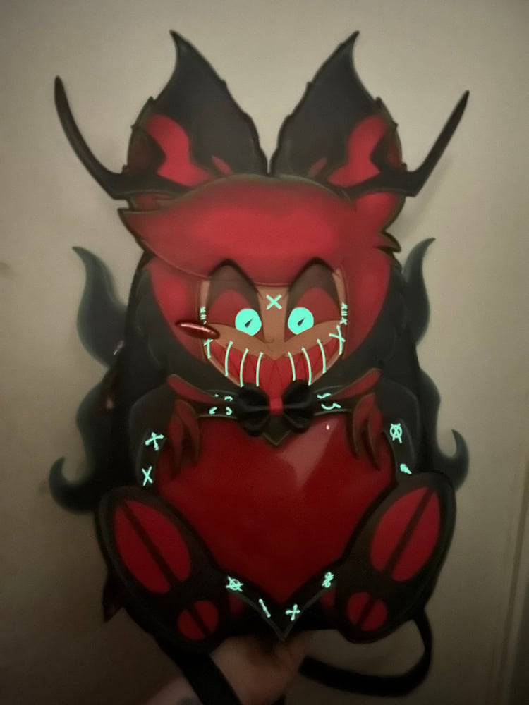Alastor will feature a 3D bow tie and custom zipper pulls. He will also feature some glow in the dark elements!